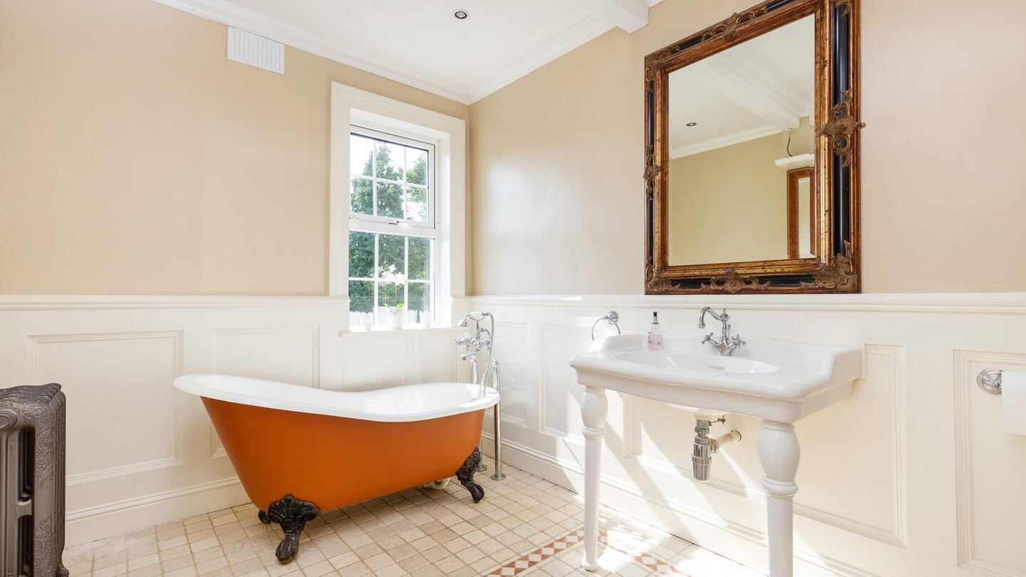 The first floor bathroom has a delightful slipper bath on claw feet, a porcelain basin on porcelain legs and full-length mirrors. The front bedroom has a second bay window, the main has an en suite showerroom and a built-in wardrobe. The remaining bedrooms are to the front and rear, both with built-in wardrobes.
