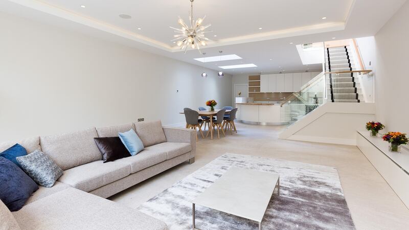 Downstairs at basement level is a vast open-plan kitchen/dining/living space with a utility and a multitude of storage to the rear. The kitchen comes with all the bells and whistles one would expect of such a high-end property which comes with a €2.45 million price tag through agent Sherry FitzGerald.