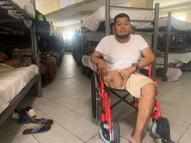 Rivera was on The Beast last November. He’s 42 years old now and is from Honduras. His dream, like many others, was to get to the US and build a new life for himself. But something happened. He fell off the train and as it continued along the track, the wheels sliced off his right leg above his knee and mangled some of the toes of his left foot.
